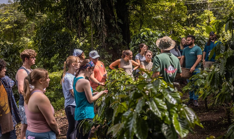 A favorite stage for many visitors! Enjoy savoring a freshly brewed cup of coffee. Choose between a medium roast or dark roast for a personalized tasting experience that highlights the unique flavors of our farm.